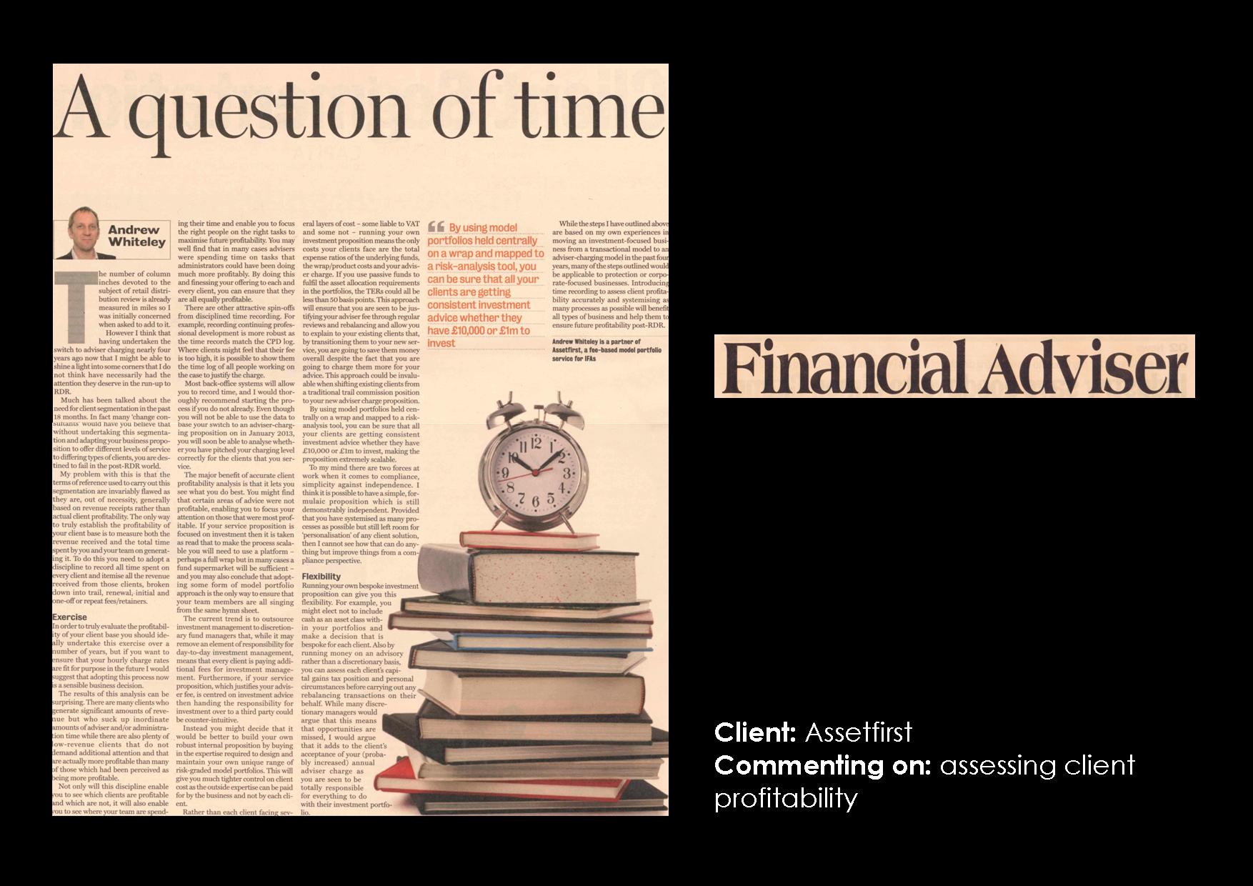 Financial Adviser Magazine - How to effectively assess client profitability and design a cost effective service proposition that will deliver results post RDR